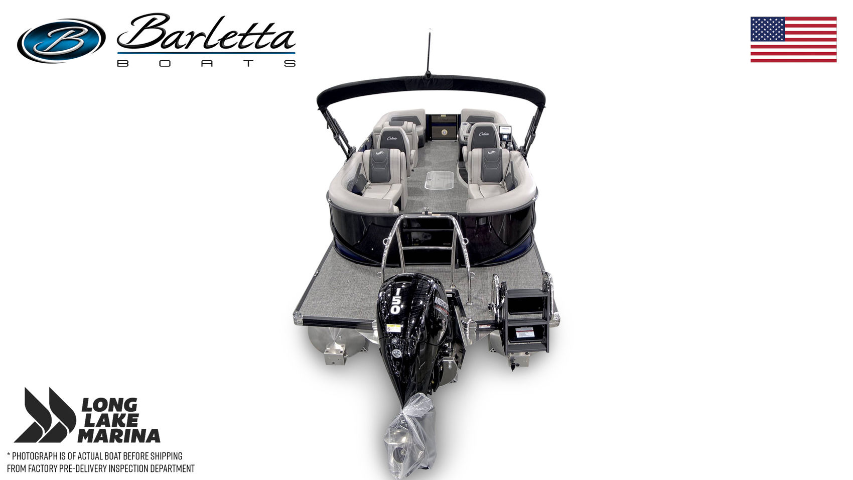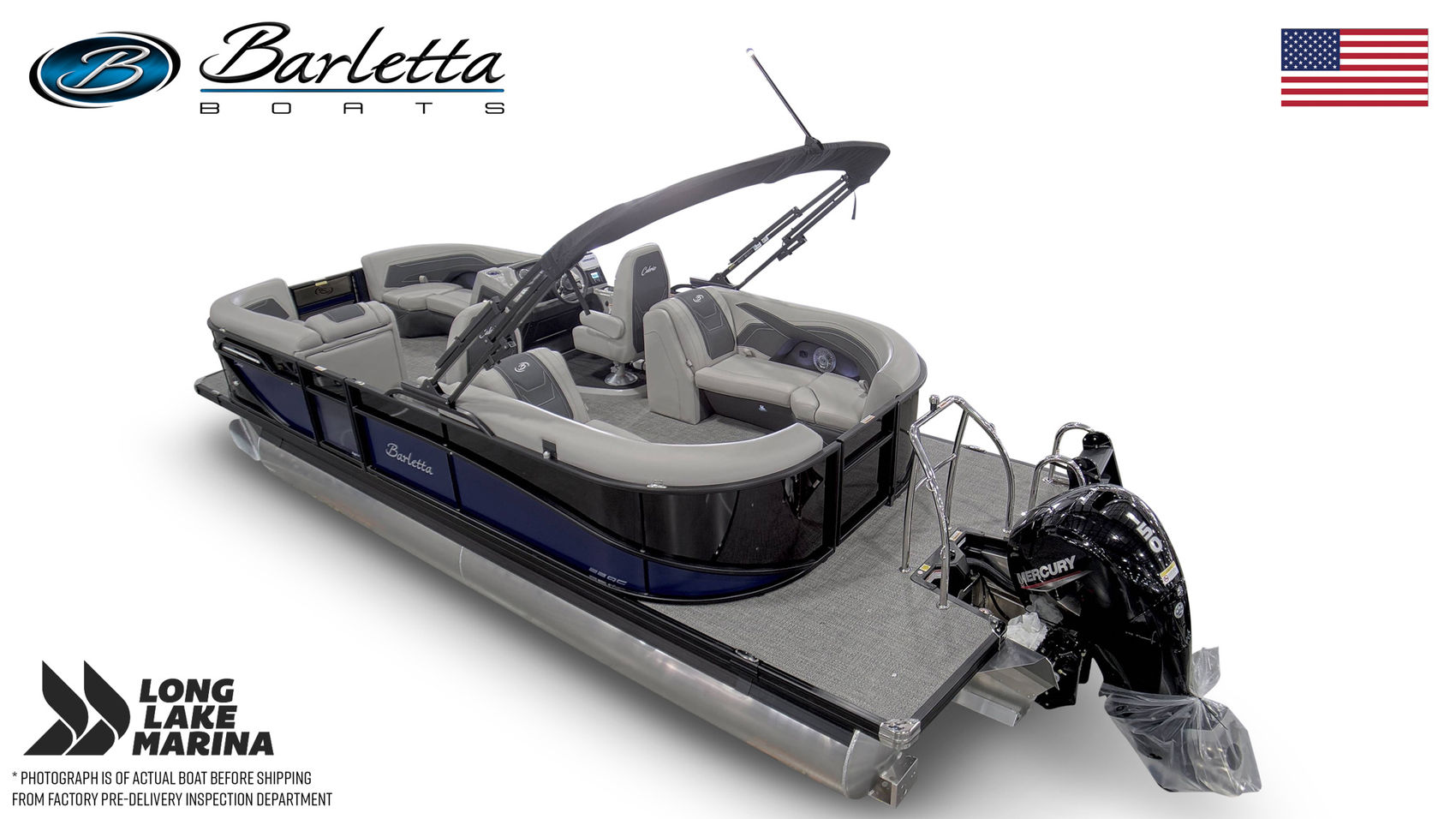 The 2026 Barletta Cabrio C22QC is a stylish and versatile pontoon designed for comfortable cruising, entertaining, and relaxed days on the water. At 22 feet, the quad-lounge layout provides generous seating in all four corners, creating an open and social environment for family and friends. Powered by a Mercury 150L Four Stroke engine, the C22QC delivers smooth, dependable performance, while the tritoon package with midship storage enhances stability and provides convenient space for gear. Premium upholstery, Barletta’s refined craftsmanship, and a pedestal table with Yeti-ready cupholders create a welcoming onboard atmosphere, while the interior RGB lighting package adds ambiance for evening cruises. Thoughtful stainless steel accents and a well-designed layout round out a pontoon built for effortless enjoyment.Standard Features