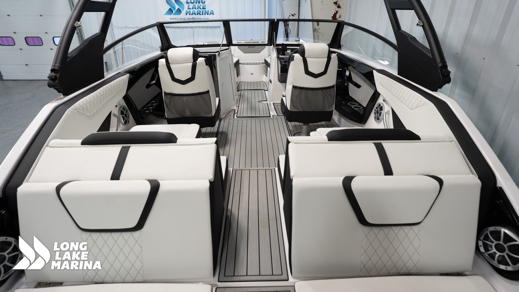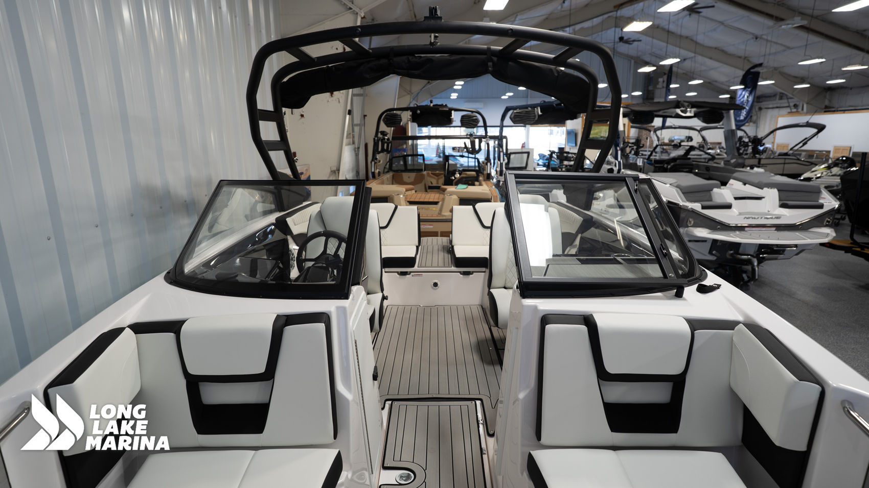 Bow seating with walk-through windshield