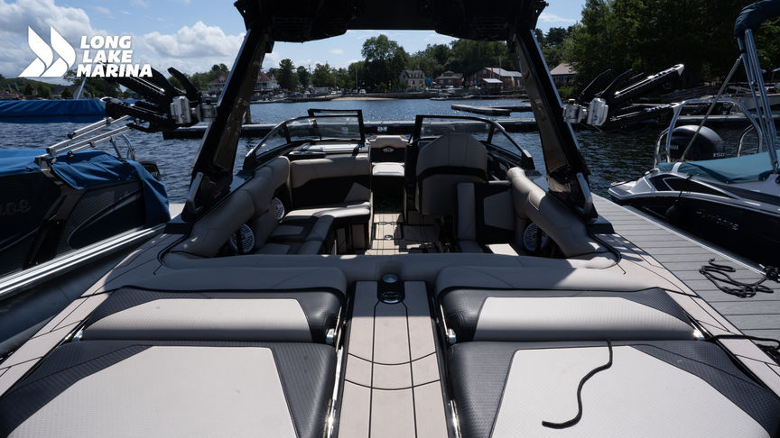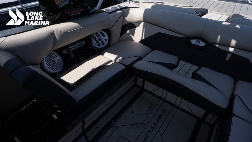 This pre-owned 2022 23’ Centurion Ri230 combines high-performance capabilities with a luxurious interior, ensuring endless fun and excitement on the water. With only 106 hours of drivetime, this Ri230 delivers pro-level wakes and waves, boasting a whopping 5400 pounds of evenly distributed ballast and a rapid fill time of less than 90 seconds courtesy of its Ramfill 2 ballast system. Equipped with Centurion’s custom made DropZone Auto Tower, you can swiftly fold the tower down in 14 seconds and push it back up in a mere 17 seconds with the push of a button, ensuring you waste no prep time before you ride. This wake boat features an enhanced Coverfire 2.0 sound system, complete with tower speakers for the ultimate audio experience. On the interior, discover cutting-edge amenities such as dual 12’ touchscreens where you can access all driving data and surf settings, a heated driver’s seat, and two snorkel heaters for those cold early morning sessions. Revolutionizing innovation across the board, this Ri230 emerges as a deeper, longer, and more aggressively styled wake surf boat, seamlessly blending thoughtful refinement with enhanced performance.Standard Features